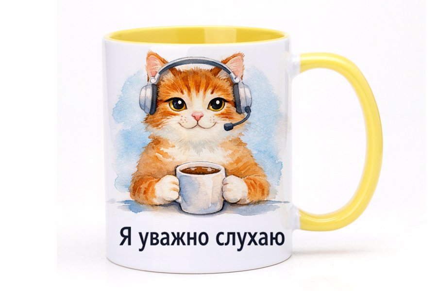 Керамічна чашка”Я уважно слухаю”-  серія для тих,хто на созвоні