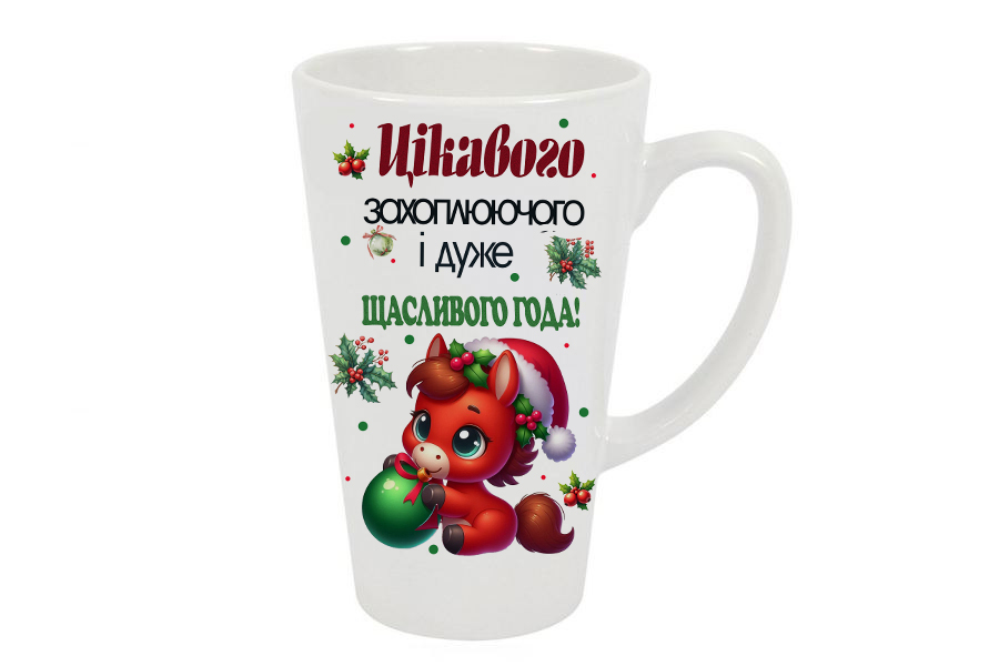Велика чашка лате “Щасливого года” (475 мл) – оригінальний подарунок для кави та чаю.