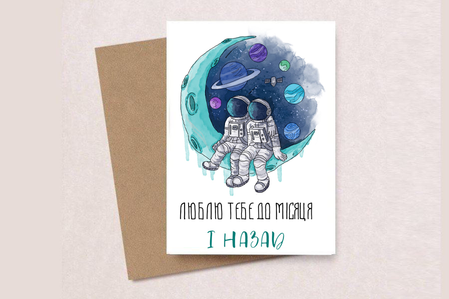 Унікальна авторська крафтова листівка з конвертом та авторським принтом” До місяця і назал”: Подаруйте незабутні емоції!